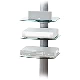 - Do-it-yourself solution that neatly organizes components under flat panel without the need to run the connections through wall- 3 fully adjustable shelves at 1 increments- 6mm tempered glass shelves- Max shelf capacity: 30 lbs- Single-stud mounting- Integrated cable management hides wires- Paintable & trimable covers- Easy to install- Can be used with or without flat panel- Dim: 50"H x 17.5"W x 16.5"D- Platinum with clear glass