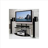 The sweeping curves of the liquid silver legs and table frame, along with the curved deep black glass and black universal TV mounting system form a dramatic foundation to display a Flat Panel TV. This striking design will accommodate most Flat Panel TVs up to 52" or 125 lbs. and up to 4 or more audio video components plus a center channel speaker.It features tempered safety glass and a scratch resistant powder coated metal frame, and includes an integrated CMS� Cable Management System to hide wires and interconnect cables.